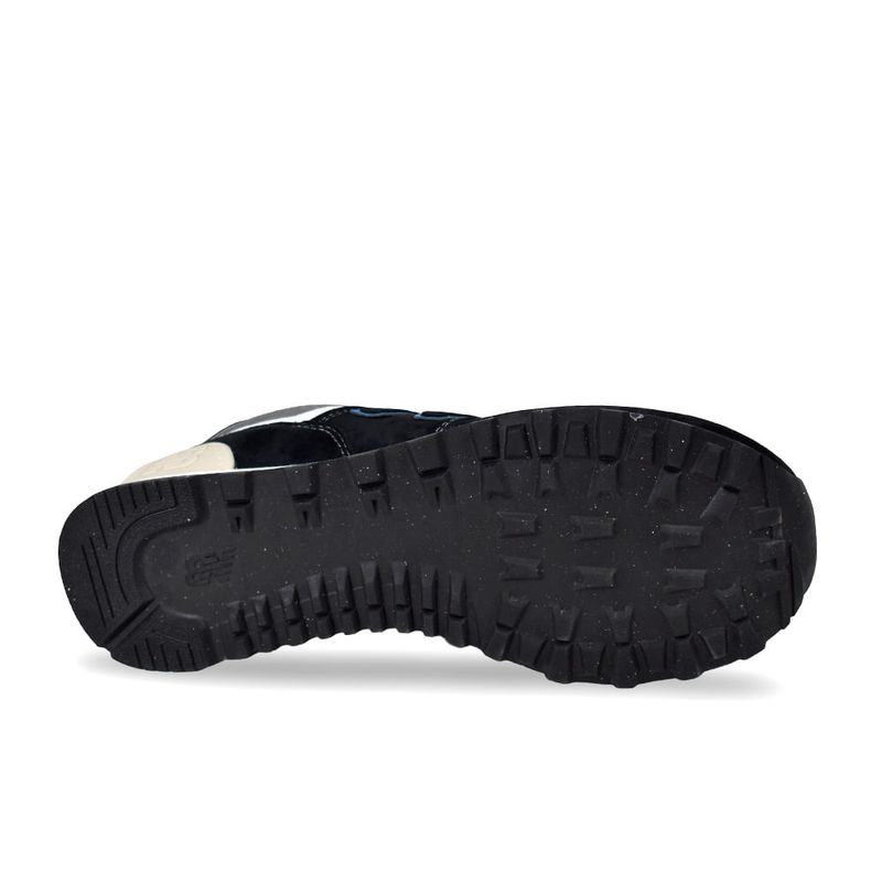 Definidas como "las zapatillas más New Balance jamás creadas", el modelo 574 se ha consolidado como un ícono imprescindible del estilo de vida global. Concebidas originalmente en 1988 como un diseño híbrido entre calzado para carretera y trail, las 574 ofrecen una fusión única de versatilidad, sencillez y comodidad. Esta combinación de colores en negro, gris y un vibrante azul ("Blue Agate") captura la esencia del ADN running de los 80, adaptándose perfectamente al día a día y a la moda urbana contemporánea. Una silueta de caña baja inspirada en el rendimiento deportivo pero optimizada para el uso diario y el estilo de vida casual. La parte superior está elaborada con una combinación de cuero descarne/gamuza y malla para ofrecer durabilidad, soporte y transpirabilidad. La tecnología de entresuela ENCAP® combina espuma EVA suave con un borde de poliuretano duradero para brindar un soporte excepcional y la máxima comodidad durante todo el día. La suela exterior de goma robusta proporciona una tracción fiable y agarre en diversas superficies.