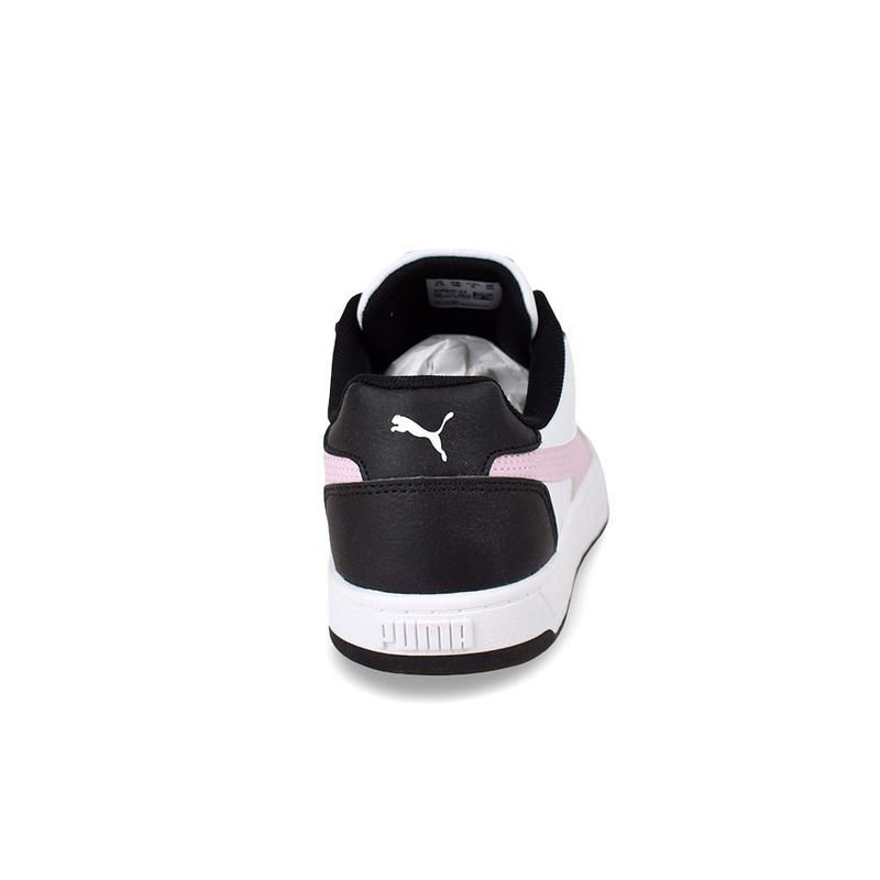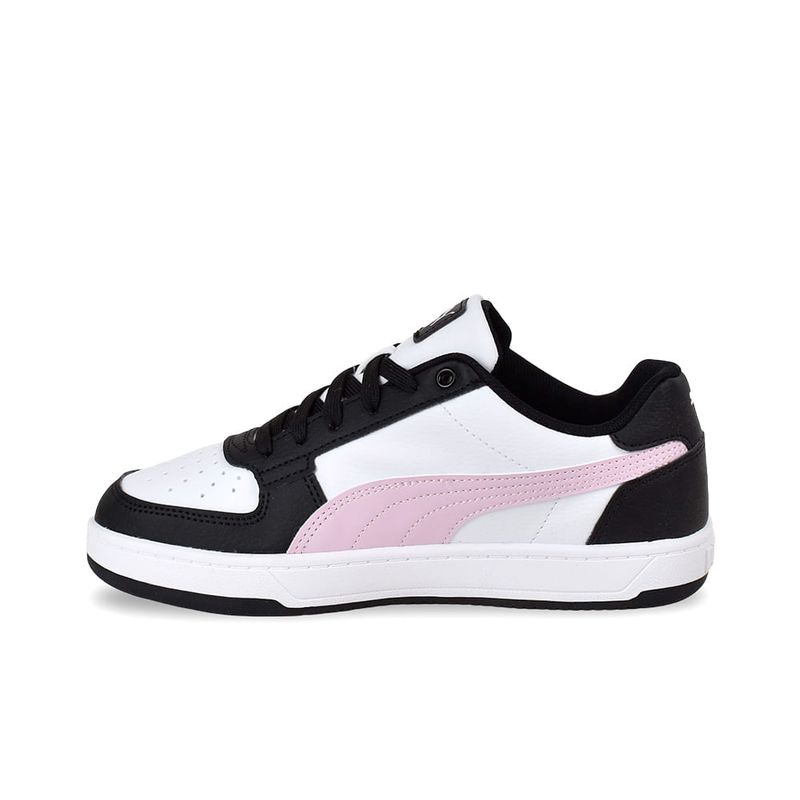 Estas zapatillas, en un llamativo esquema de color blanco, negro y un toque de rosa suave Grape Mist, son la elección perfecta para quienes buscan un calzado versátil, duradero y con personalidad. Equipadas con la plantilla SOFTFOAM+ de PUMA, que ofrece una amortiguación instantánea, suave y duradera, garantizando el máximo confort en cada paso. Su diseño de caña baja se inspira en la estética universitaria y de baloncesto de los 90, con una suela texturizada que eleva cualquier look urbano. La parte superior está confeccionada en cuero sintético, complementada con perforaciones que añaden transpirabilidad y un ojal metálico que inyecta actitud al diseño. La suela de goma duradera proporciona un agarre óptimo en diversas superficies, ideal para la vida en movimiento.