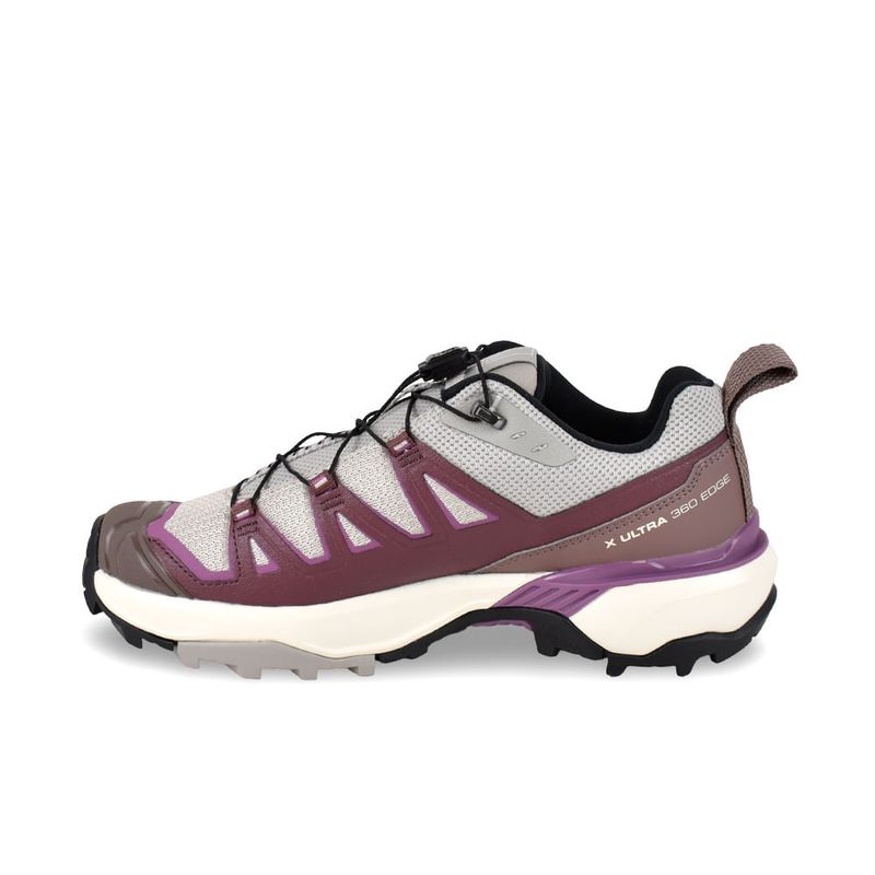 Conquista cualquier sendero con una zapatilla que redefine el senderismo moderno, combinando la legendaria protección de la línea X-Ultra con un diseño dinámico y sostenible.La Salomon X Ultra 360 Edge es la evolución natural del calzado de montaña para la nueva generación de aventureras. Inspirada en el legado de la icónica familia X-Ultra, esta zapatilla ofrece un equilibrio perfecto entre la ligereza de un calzado deportivo y la robustez necesaria para terrenos técnicos. Su estética renovada con líneas dinámicas y toques de color se une a un compromiso ambiental, utilizando materiales reciclados en su confección para que cada paso cuente también para el planeta.Diseñada para ofrecer una tracción excepcional en la más amplia variedad de superficies, brindando confianza total tanto en terrenos húmedos como secos, duros o resbaladizos.Un inserto moldeado integrado en la suela que proporciona una sujeción lateral potente y una estabilidad superior sin comprometer la movilidad del pie.Entresuela de espuma EVA de alto rendimiento que absorbe los impactos de forma eficiente, garantizando confort durante toda la jornada. Sistema de cordones resistentes y minimalistas que permite un atado rápido de un solo tirón, facilitando el poner y quitar el calzado con precisión.Envuelve el pie desde la entresuela hasta los cordones, proporcionando un ajuste seguro, cómodo y prácticamente personalizado.La capellada cuenta con un 49% de materiales reciclados, reafirmando el compromiso de Salomon con el medio ambiente.