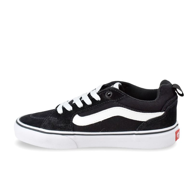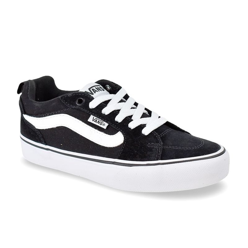 Las Vans Filmore son un ícono del diseño urbano que combina la herencia del skate con la funcionalidad necesaria para el día a día. Con su silueta de corte bajo y la inconfundible banda lateral Sidestripe, este modelo en combinación Negro/Blanco ofrece un look atemporal que nunca pasa de moda, adaptándose perfectamente a cualquier outfit casual.Inspiradas en las clásicas Old Skool, las Vans Filmore destacan por su construcción vulcanizada y duradera. Están diseñadas para ofrecer no solo un estilo auténtico, sino también una comodidad superior gracias a su cuello y lengüeta acolchados que brindan mayor sujeción y flexibilidad al caminar. Es el calzado ideal para quienes buscan resistencia y el sello distintivo de la cultura urbana en cada paso.Capellada confeccionada en una mezcla de descarne (suede) y lona (canvas), lo que garantiza tanto estilo como resistencia al uso diario. Diseñadas con una puntera reforzada para resistir el desgaste y prolongar la vida útil del calzado.Equipadas con la icónica suela de caucho con diseño Waffle original de Vans, que ofrece un agarre firme y excelente estabilidad. Incluyen la emblemática banda lateral Sidestripe, ojales de metal y cierre de cordones para un ajuste seguro y personalizado.Forro interior textil suave y paneles de doble costura que mejoran la durabilidad estructural.