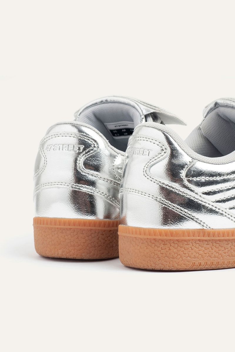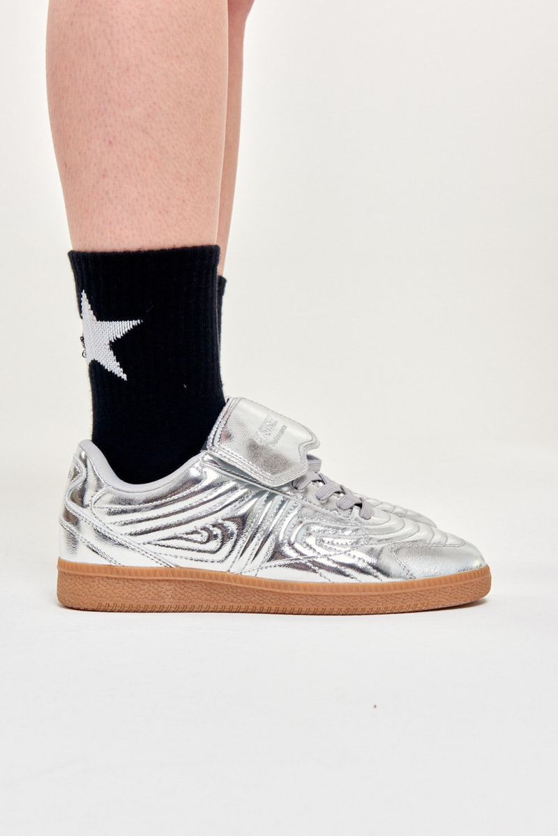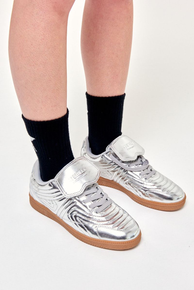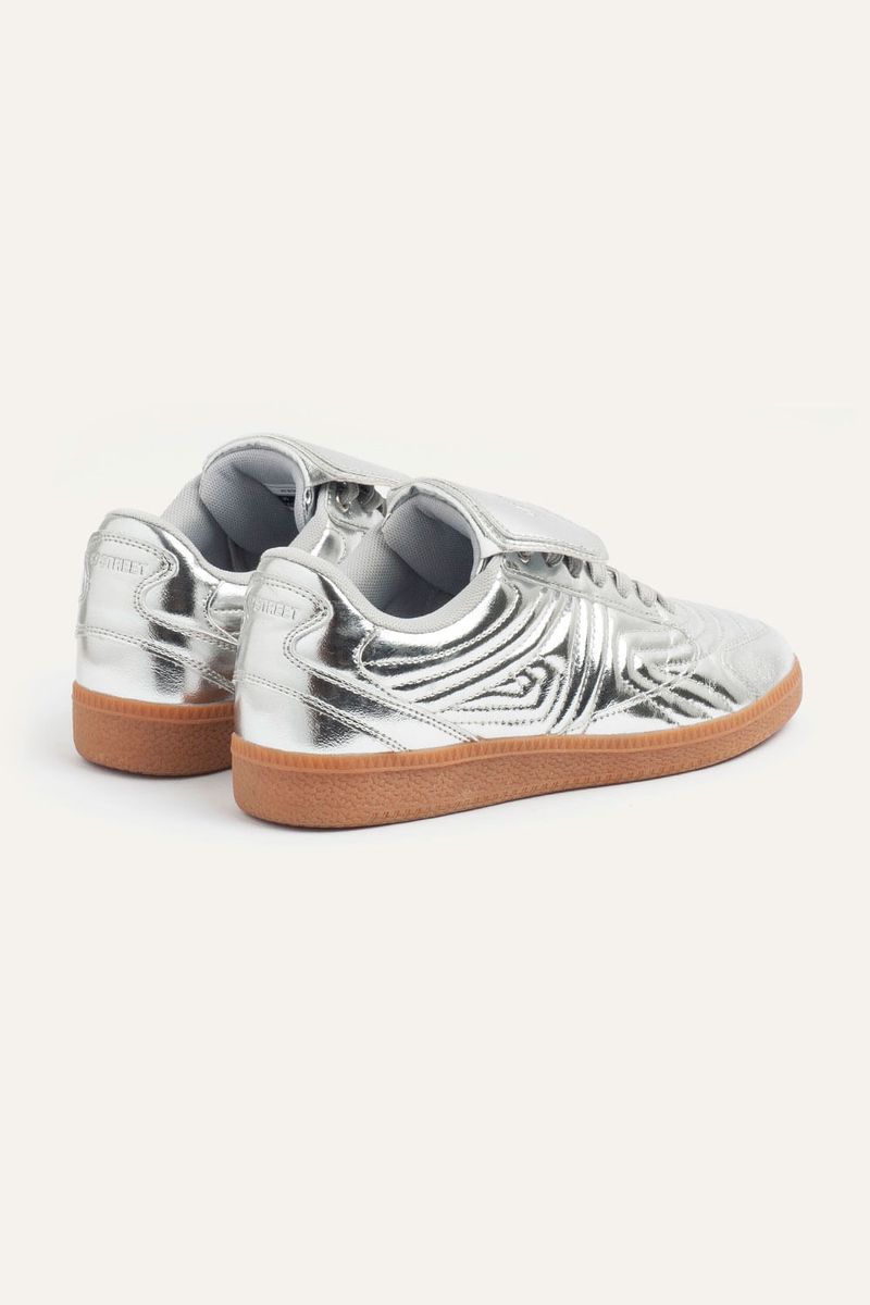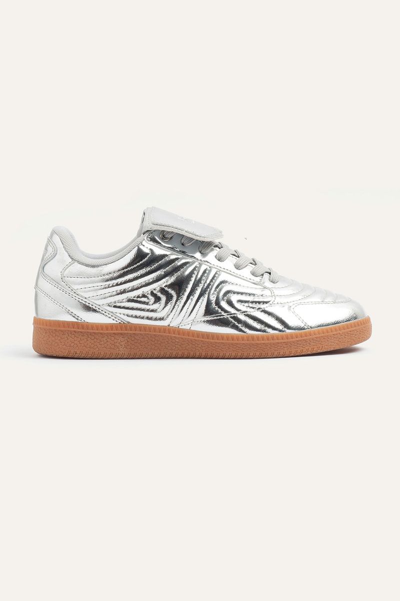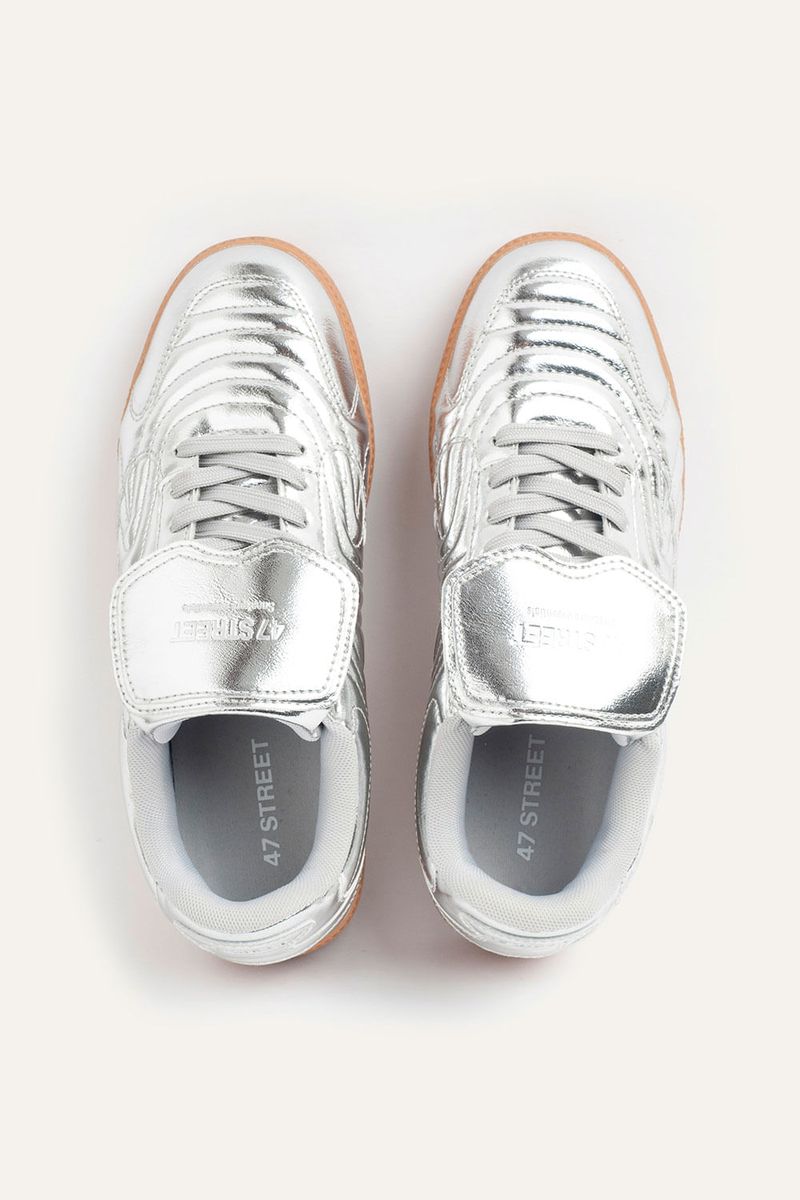 Zapatilla de efecto cuero matelaseado con base baja, lengüeta exterior tipo botín y costuras marcadas. Perfectas para un look sporty con short y remeras cortas.