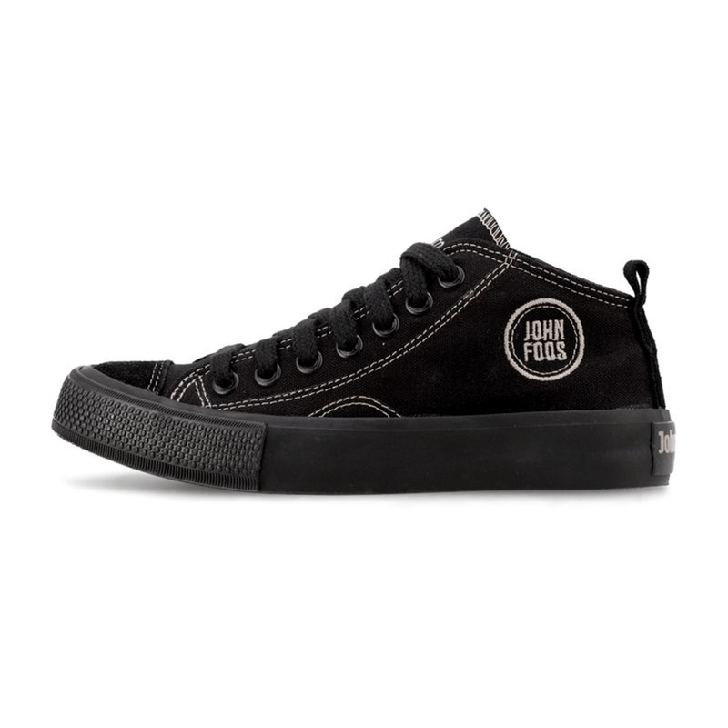 Zapatilla de media caña en cuero ecológico negro con bordado de logo retro.