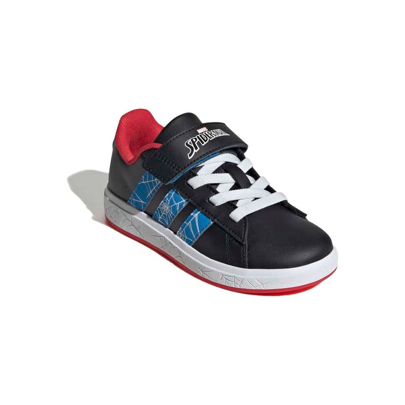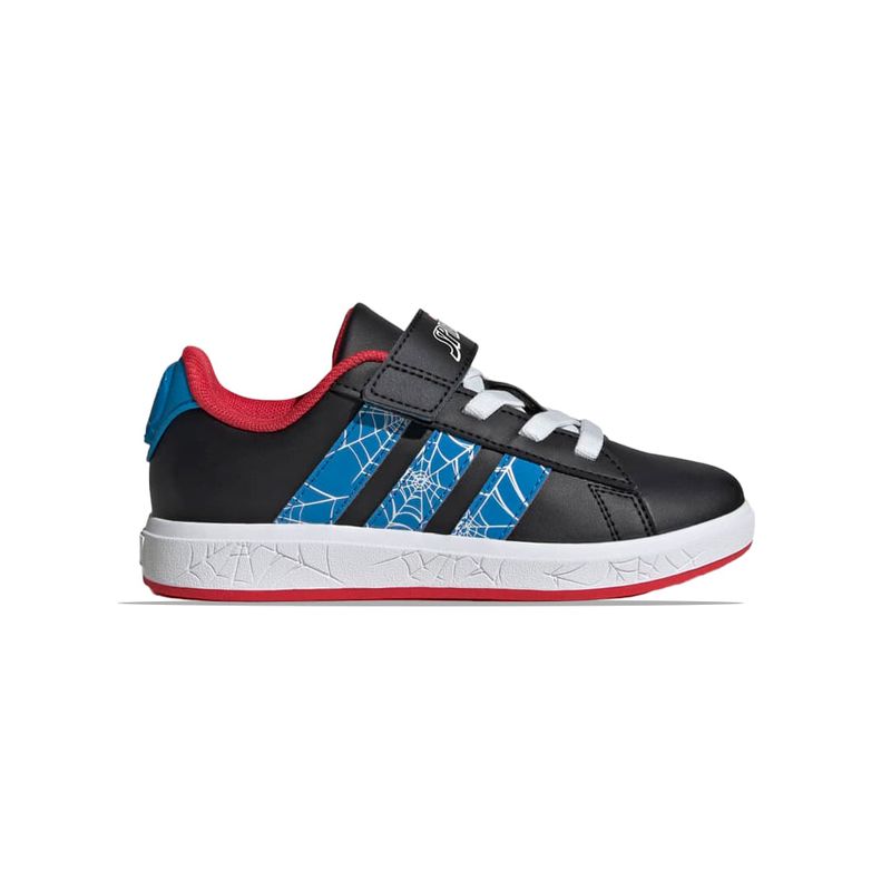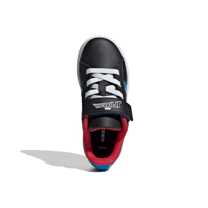 A los niños apasionados por la aventura les encantarán estas zapatillas Spider-Man de adidas. El estilo Grand Court se ha reimaginado en los colores clásicos del cómic, con un diseño de Spider-Man en el lateral y un talón en 3D. Los cordones elásticos y la tira facilitan que se los pongan, para que puedan entrar en acción en cualquier momento.