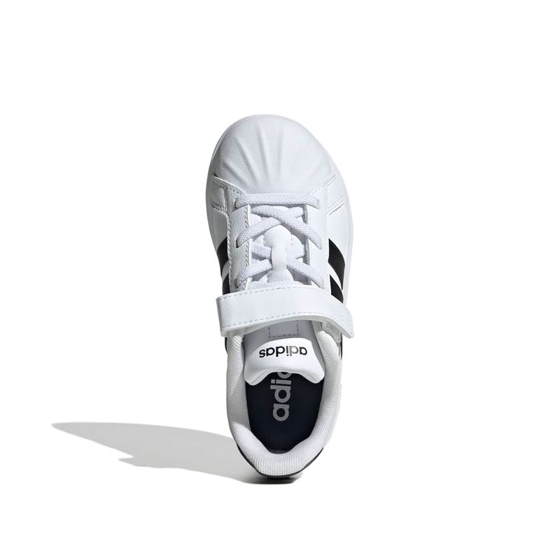 Ya sea que corran por el parque o se relajen en casa, estos zapatos para niños de adidas los mantienen cómodos y con estilo. La suela de goma se adhiere al suelo mientras se mueven, y la parte superior sintética con puntera de goma ofrece mayor durabilidad. Las correas de velcro facilitan su colocación y extracción, para que tu hijo esté listo para la aventura en cualquier momento.