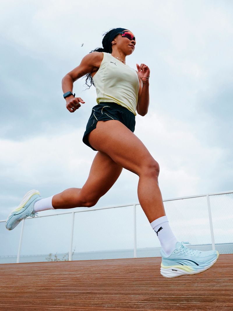 Zapatillas Puma Velocity Nitro 4 Mujer Running Celeste