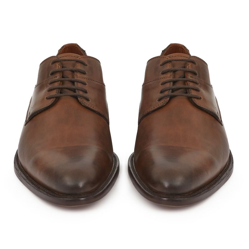 Zapato fabricado en cuero genuino, con base de suela y terminación en punta que aporta elegancia al estilo que elijas. Su diseño combina detalles en cuero patinado y costuras laterales. Perfecto para ocasiones o eventos especiales, o incluso para un look más informal.