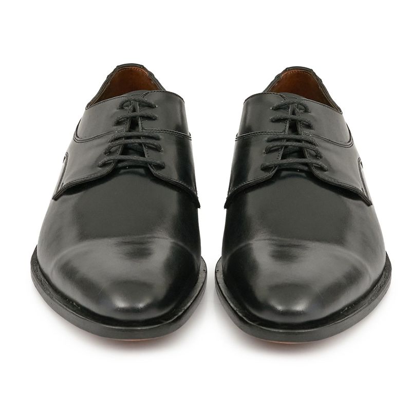 Zapato fabricado en cuero genuino, con base de suela y terminación en punta que aporta elegancia al estilo que elijas. Su diseño combina detalles en cuero patinado y costuras laterales. Perfecto para ocasiones o eventos especiales, o incluso para un look más informal.